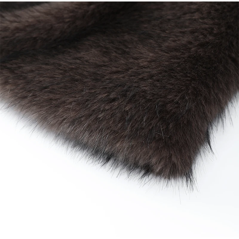 Masterfully crafted for the modern professional, this medium-length fur coat transitions seamlessly from daytime meetings to evening engagements. Its sophisticated brown hue and clean lines radiate timeless elegance. -